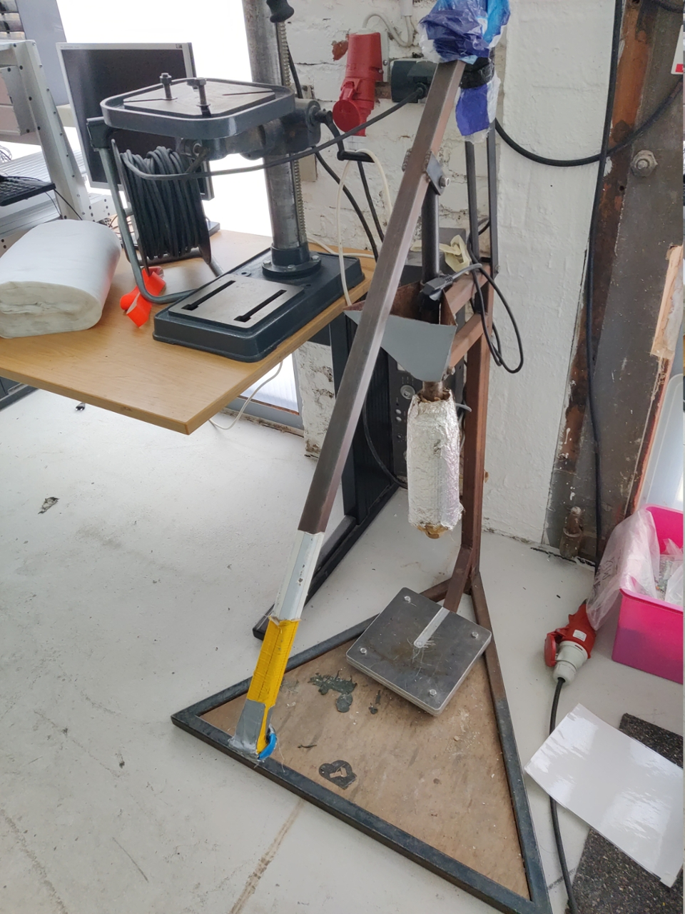 Die gesammelten Materialien können mit dem Schredder zerkleinert werden. Das lohnt sich allerdings erst, wenn ein paar Kilo zusammen kommen. Das Sieb an unserem Schredder, was die Schredderflakes zurückhält und nach und nach über die Rutsche in den Auffangbehälter gleiten lässt, hat ein gewisses Sammelvolumen unterhalb der Zerkleinerungsmesser. Das Schreddern dauert eine Weile und heizt die ganze Maschine auf. Dabei dehnt sich das Sieb aus und verklemmt. Das Abkühlen und Reinigen, um auf ein anderes Material zu wechseln, was geschreddert werden soll, ist aufwendig und zeitintensiv.