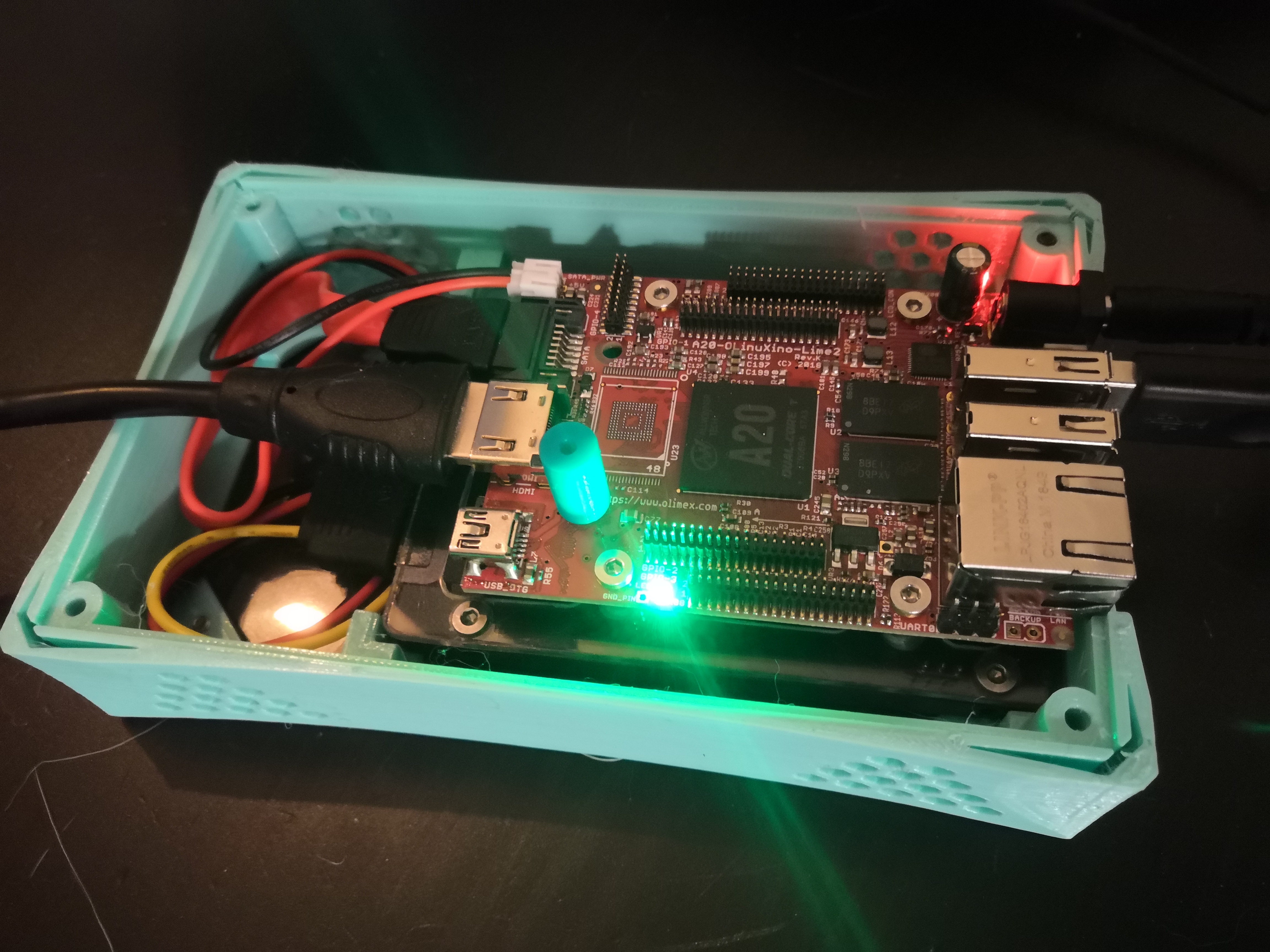 The possible heart of your own CoBox solution: Olimex A20 Olinuxino Lime 2 in a self-made housing