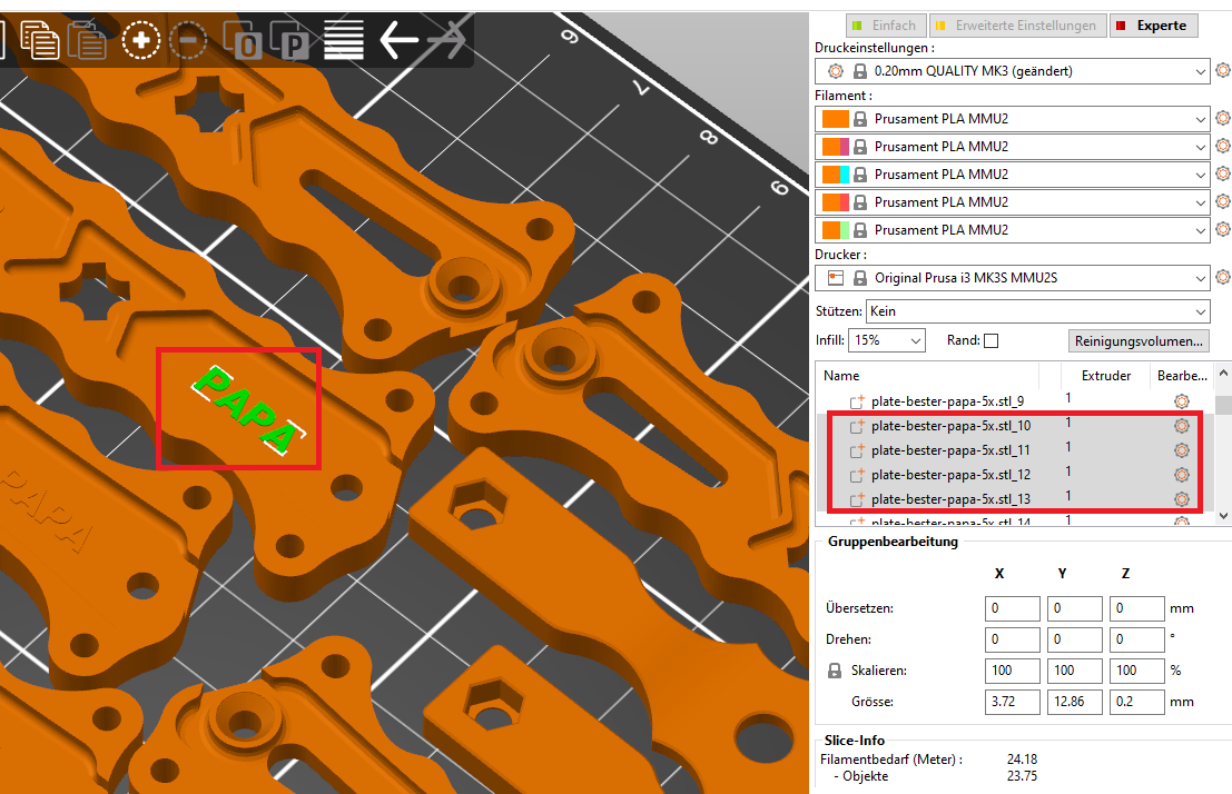 Mit Hilfe von PrusaSlicer lasten sich die migrierten Plattenzusammenstellungen wieder in einzelne Teile aufbrechen.